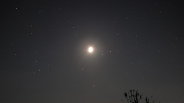 望遠レンズではないので月をアップでは撮れませんが、星も設定次第でそれなりに撮れる。