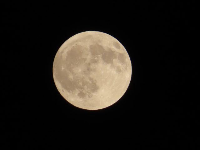 雨が降る前、昨夜のうちにほぼ満月をパシャリ