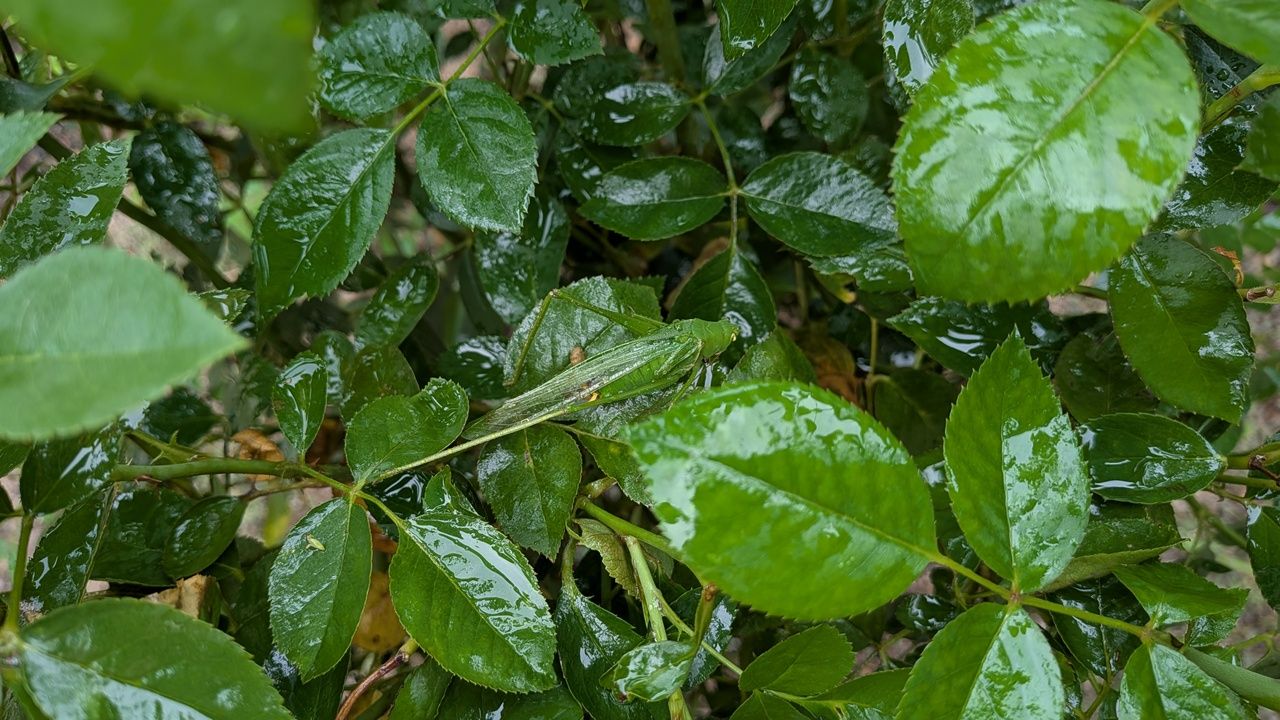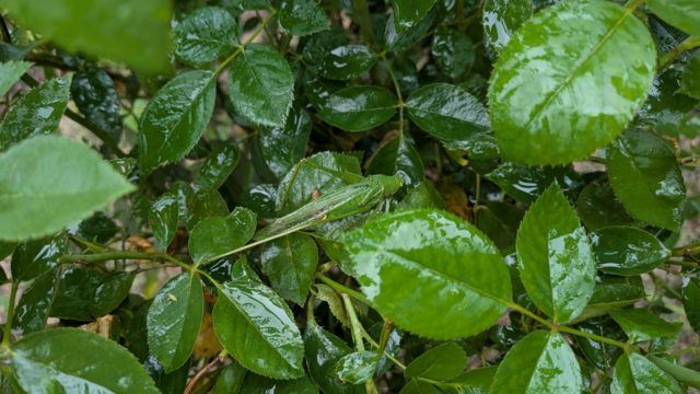 バッタはバラに悪さをしていませんか?うちはもっと小さい2㎝くらいのバッタが新芽を食べています。