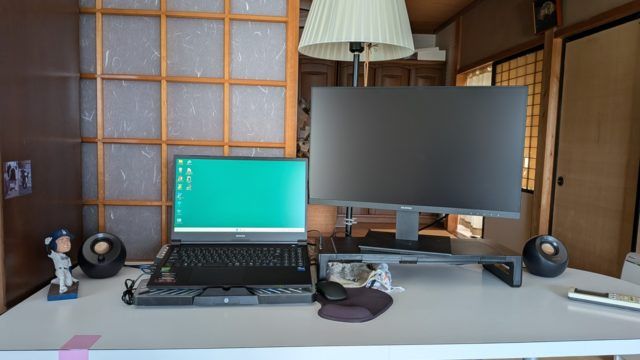 来週、自宅で仕事をするにつけ机の上を仕事用にレイアウトしなおしました。