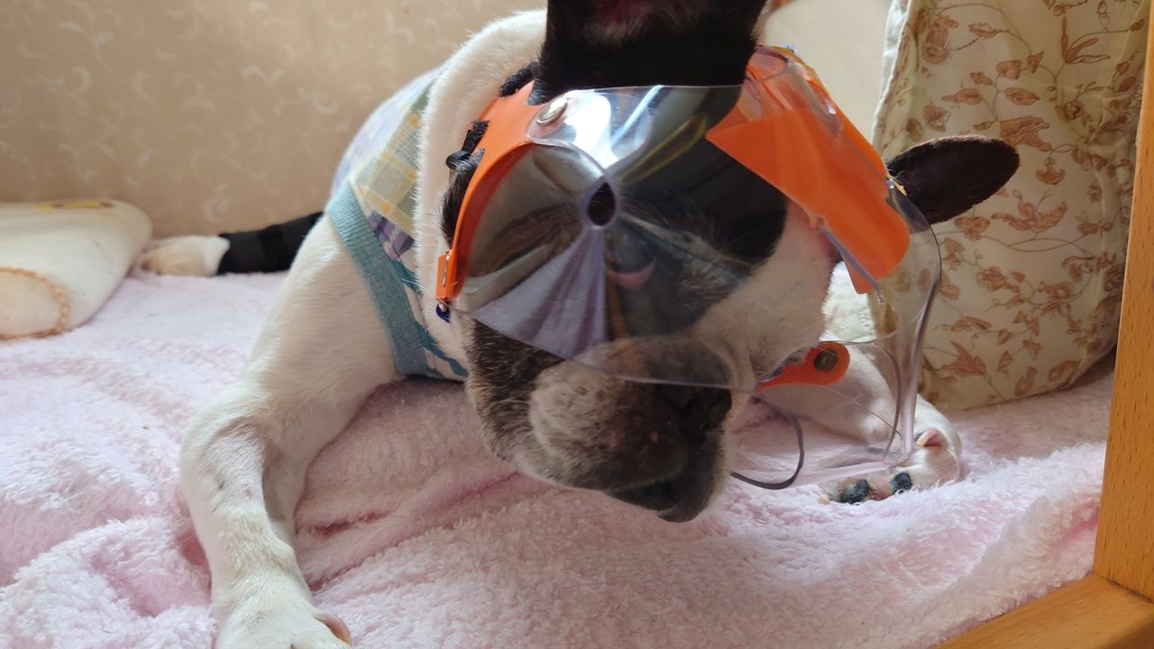 目を保護するメットも嫌がらずに被ってくれてたから私も仕事に行くことができた。