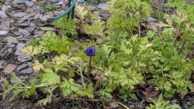 寒気が下りてきて、とても寒いのにアネモネの花一輪つぼみがきています。