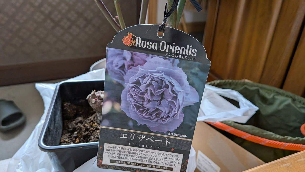 今年は薔薇は買わないと思っていたのに、先日、インスタを見ていましたら「花ごころ」さんが、まぁーなんと綺麗な紫色した薔薇、その名も「エリザベート」の画像を流してきたではありませんかっ!