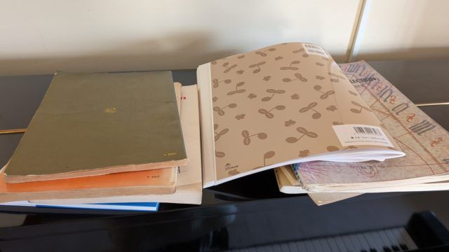 そして私のピアノの上には雑に置かれた楽譜たち😅
