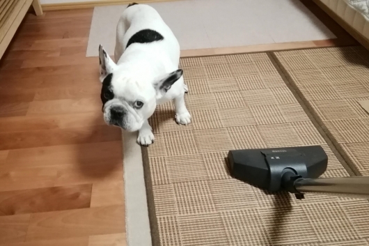 掃除機に対して敵視するふう爺さんの図。