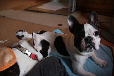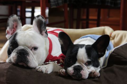 そして、かーちゃんが昼ごはんを食べている間のブヒはというと、またまた2ブヒ並んで散歩後の休息。