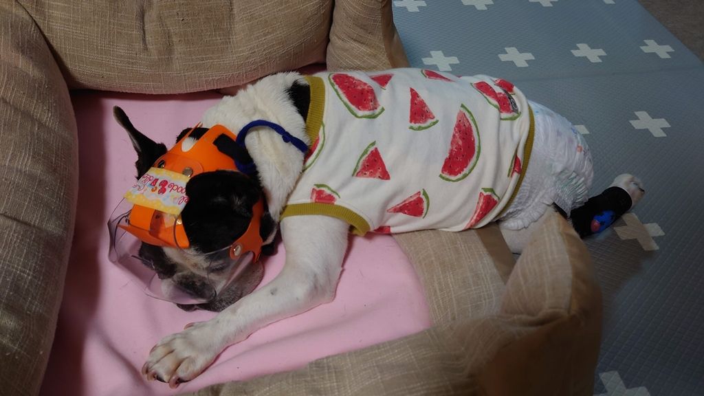 フィラリアのお薬がちょうど10kgを境に量が変わるのだけど、すでに今年の初回分を10kg未満のものを貰っていたので、看護師さんに「もう一回、全部脱いで計ってみましょうか」と言ってもらい全部、脱いだら9.85kgだった(笑)
