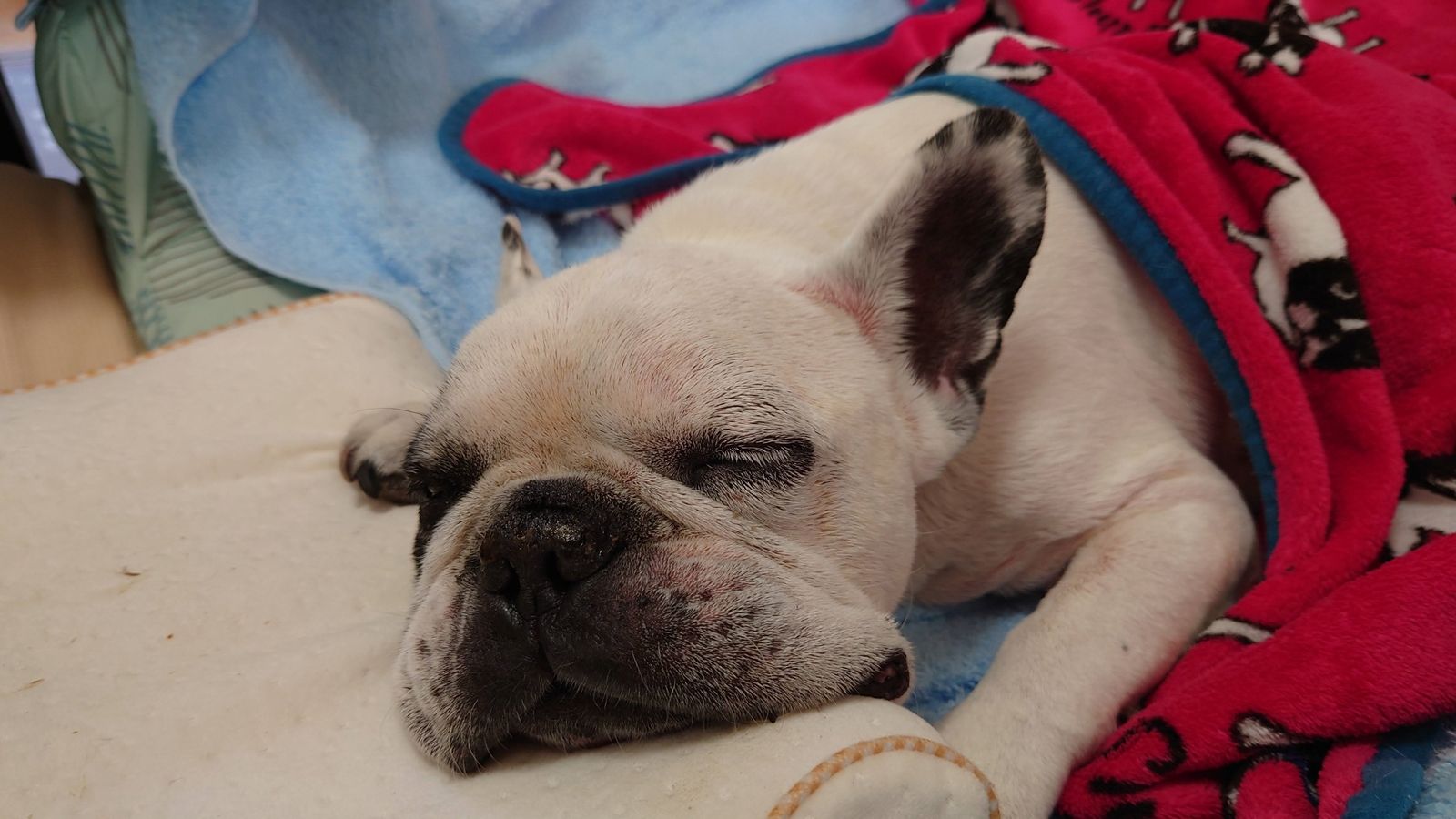 たまに目が開くと体内に熱がこもっているようで、ガーガーハァハァと呼吸が苦しくなるのは心配。