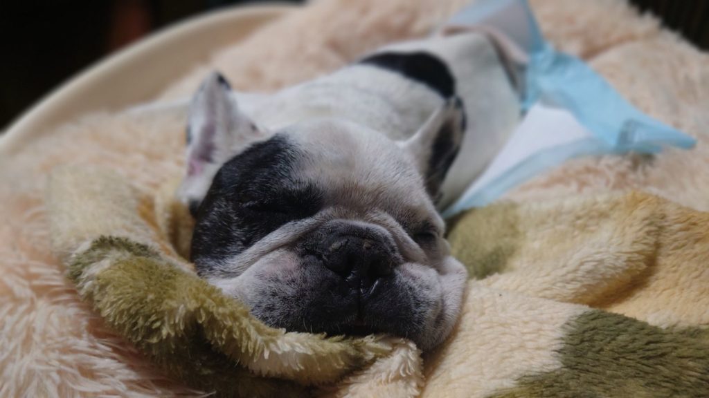 今日は午前中は、少しガーガー呼吸の多いお留守番で、あまり眠れなかったせいか、私が帰宅したあとはよく寝ていた。